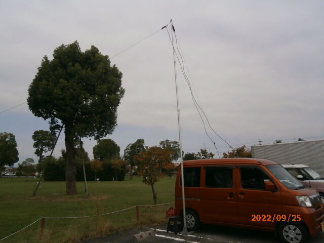 福岡コンテストは、10年くらい前だったか、7月開催されていたころに1度参加して以来、久しぶりの参加です。今回は、九州百名山である釈迦岳・御前岳登山の帰り道での運用です。登山後はいつも温泉に行くのですが、今回は福岡県内ではもっとも好きな筑後船小屋「恋ほたる」です。ここは、福岡県営の筑後広域公園の一角にあり、車中泊用のRVパークも併設されています。運用地も、ここの駐車場の一角からで、7/21&14Mのツエップアンテナを設置して25日の午前中だけ運用しました。午前10時を過ぎたころには公園を訪れる人が多くなり、アンテナを早々に撤去、QRTしました。実質運用時間は2時間強で、14Mも開けたものの、7Mが中心で120局程度できました。思った以上に乗り込み組も含めた県内局は多かったかと思います。入賞は狙っていませんが、多くの方にコールいただき楽しめました。