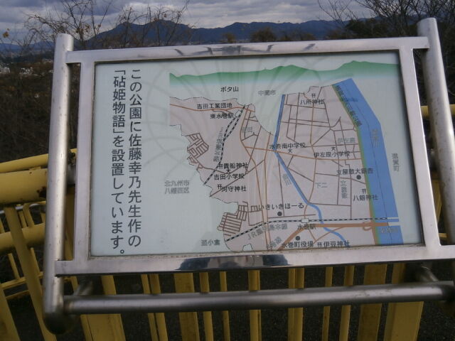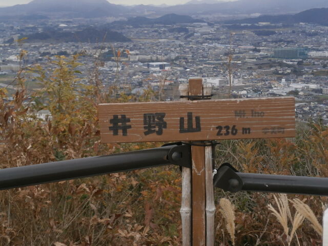 宇美駅から香椎線で香椎駅に。鹿児島本線に乗り換え、時間が有るので水巻駅近くの里山に。駅から近く短時間で往復できる朳山に明神ヶ辻山に登りました。まずは、駅を出たら北上し神社の鳥居を目指します。鳥居をくくると階段があり、直ぐに境内に出ます。右手に山道がありそこを登って行きます。途中で案内板が所々にあります。尾根に出ると道は左右に分かれます。右に取り100mで階段状の登りになり、直ぐに山頂らしきところに出ました。山頂にはトイレ、展望台があり公園になっています。展望台からは水巻市街地、遠賀川が見えます。朳山へは、来た道を一旦下り尾根に出て、そのまま三差路を直進し、笹やぶの中を歩くと、わずかなピークがあります。山頂らしき標識は何もありませんが、小さなテープに朳山と書いてあり見過ごすところでした。ここから水巻駅までは15分程度です。水巻駅には快速が止まらないので、帰りの便は確認した方が賢明でした。